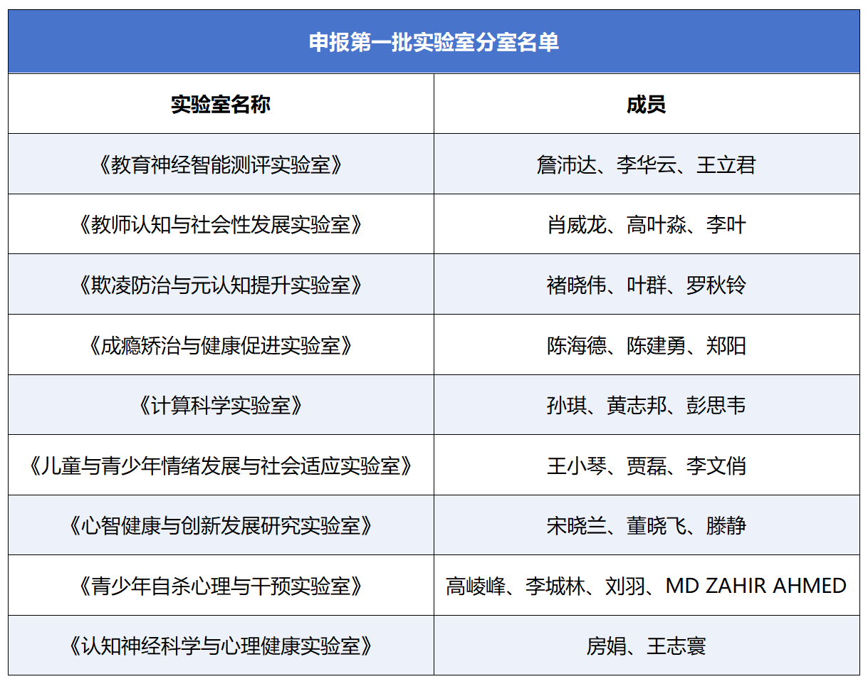为强化“有组织科研”,学院通过设立实验室分室,系统性推进科研组织模式创新。第一,聚焦方向,引导资源集中布局;引导教师团队凝练研究方向、明确中长期目标,推动科研资源集中布局。例如,詹沛达老师团队负责的《教育神经智能测评实验室》,着力破解教育神经科学中的关键瓶颈,构建以心理测量学为导向的创新平台;第二,汇聚人才,激发梯队创新活力;鼓励跨方向、跨学科团队组建,推动科研力量围绕国家重大需求协同攻关。以褚晓伟老师团队的“欺凌防治与元认知提升实验室”为例,围绕校园欺凌防治与元认知提升开展多维度深度探索,体现多方向交叉融合的研究特色;第三,夯实基础,构建可持续发展生态;建立以实效为导向的考核机制,推动团队注重数据积累与成果转化。高崚峰老师团队的《青少年**心理与干预实验室》,聚焦于特征识别、机制阐明与干预研发,致力于构建本土化的心理危机解决方案。