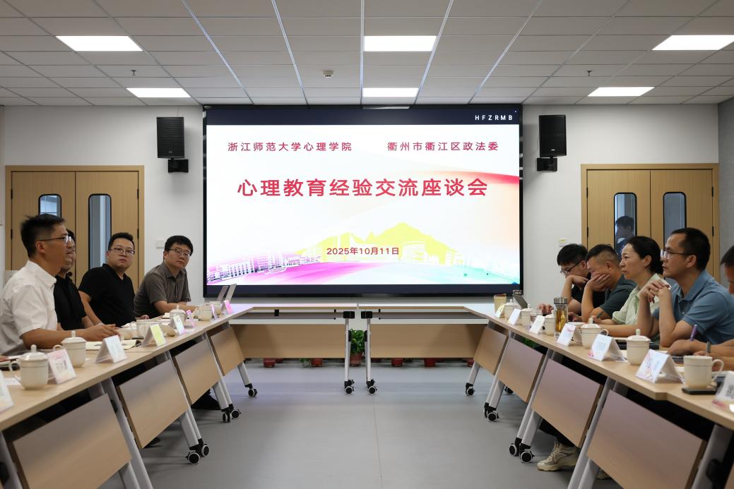 为贯彻全省专门教育和专门矫治教育工作现场推进会议精神,落实未成年人心理健康教育相关要求,切实解决专门教育实践中的难点问题,推动高校研究与地方实践深度协同,10月11日,心理学院与衢州市衢江区委政法委围绕“专门教育与心理教学融合发展”主题,于33幢511会议室联合举办经验交流座谈会。