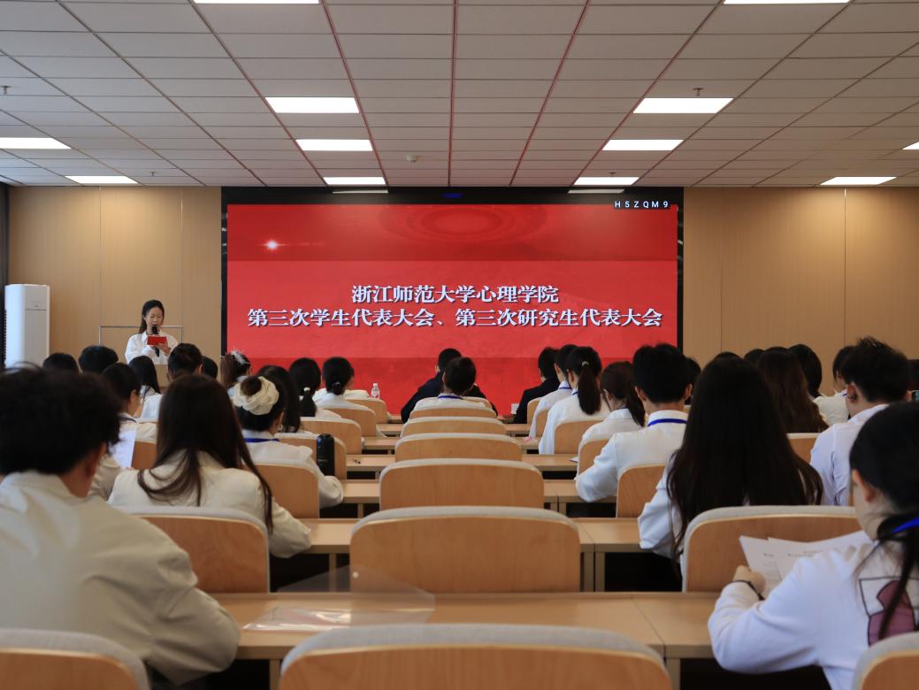 11月2日中午,浙江师范大学心理学院第三次学生代表大会、第三次研究生代表大会在33幢503教室顺利召开,心理学院党委书记马莉,团委书记兼学工办主任喻松,辅导员董伶俐、于心月出席会议,会议特邀校学生会执行主席卢盼、校研究生会执行主席李楚钰参加,共有46名本科生及研究生代表参与本次大会。