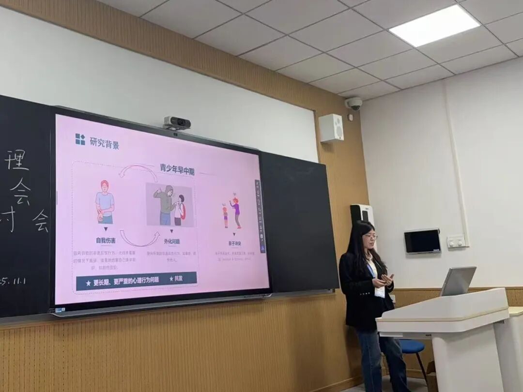 会上,我院教师在大会分组报告中纷纷发言。汪俊教授主持“普通心理与实验心理专业委员会”口头报告分场3,并作《人际接近-回避动作对联合Flanker效应的调节作用》的口头报告;谢瑞波教授主持“‘发展心理专业委员会’专题研讨会 7——家庭教养与亲子关系的发展特征及其对子女适应的影响”主题会议;詹沛达副教授作《基于心理测量建模与深度学习的视觉计算模型在认知策略识别中的应用研究》的专题报告;王小琴副教授作《动机视角下临床抑郁患者缺乏情绪调节灵活性的表现机制》的专题报告;李城林博士作《重构面孔直觉:心理轮廓与知觉轮廓如何共同影响胖脸错觉》的专题报告;滕静博士作《视觉艺术教育、表象加工与创造力的关系研究:基于正则化结构方程模型的路径分析》的口头报告;高叶淼博士作《亲子冲突、青少年非**性自伤和外化问题的发展级联关系》的专题报告。