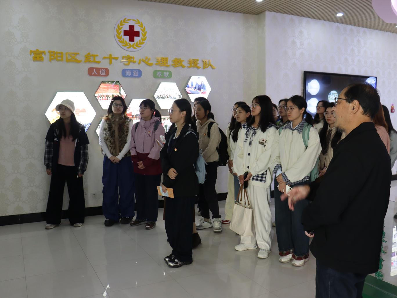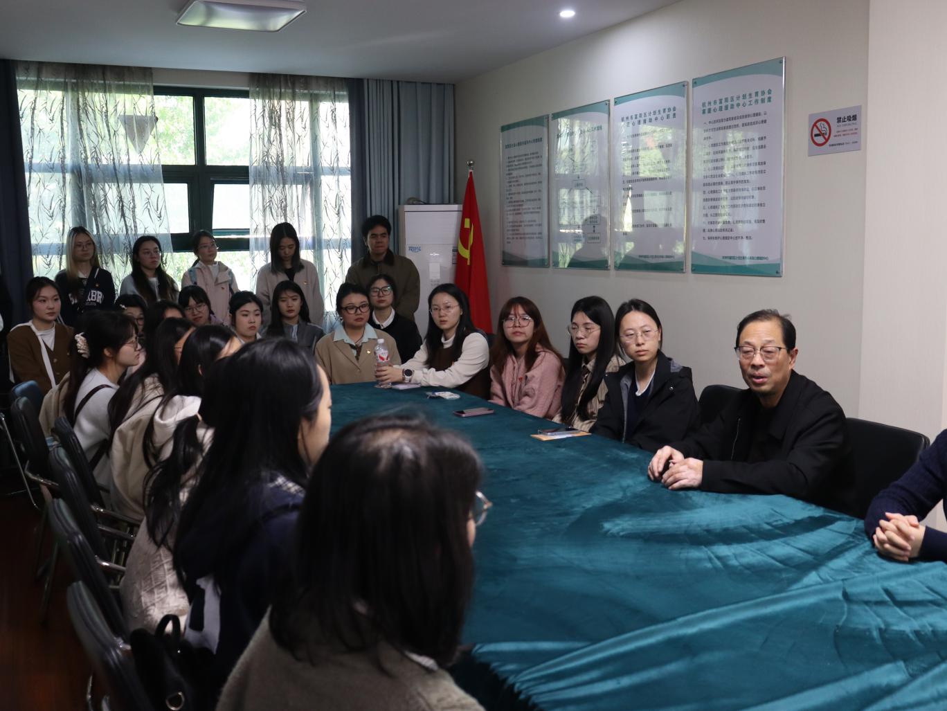 随后,师生党员前往富阳区心理咨询工作室进行交流学习。在工作室负责人、富阳区教育发展研究中心教研员苏立军老师的讲解下,了解了这一公益平台的创办背景与“来访自愿、无偿服务”的工作理念,并围绕当前心理咨询工作的现状、学生常见心理问题及成长教育等议题展开了深入交流,苏老师也对同学们的提问给予细致解答。