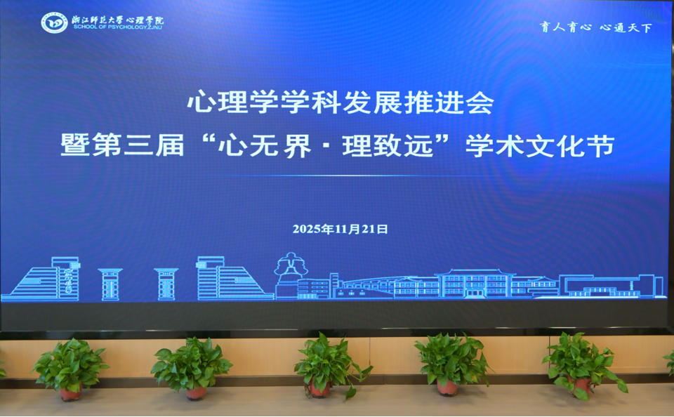 11月21日,心理学院2025年心理学学科发展推进会暨第三届“心无界·理致远”学术文化节顺利举行。北京师范大学教授、博士生导师陈英和,西南大学教授、博士生导师郭成,苏州大学教授、博士生导师冯文锋,南开大学教授、博士生导师张阔,浙江师范大学资深教授、博士生导师乐国安,校人文社会科学处副处长李康杰,心理学院院长孙炳海、党委书记马莉、副院长汪俊、贾磊出席本次活动,全院近三百名师生参与文化节。