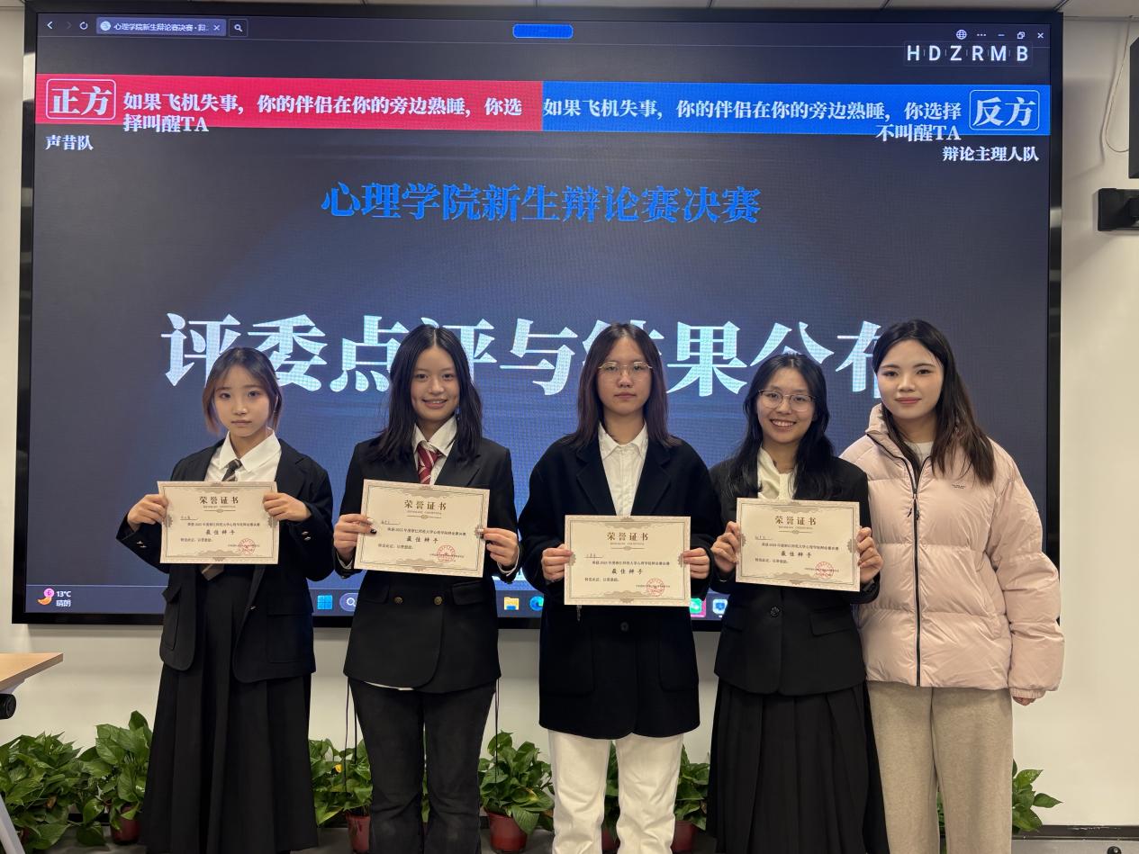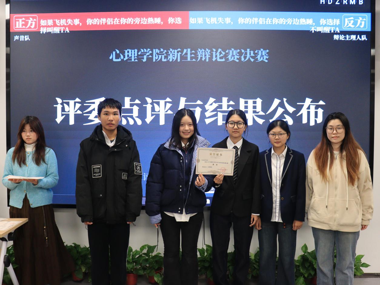 为培育新生独立的批判性思维、精进逻辑推理能力,更让同学们在思想交锋中提升口语表达水准、凝聚团队协作共识,心理学院于11月30日晚举办了2025级新生辩论赛初赛、复赛。经过初赛、复赛的激烈角逐,最终“辩完开派”队、“你说的都”队、“声昔”队、“辩论主理人”队四支队伍脱颖而出,晋级决赛。