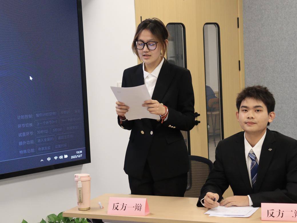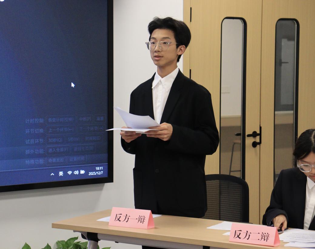 12月7日晚,心理学院2025级新生辩论赛决赛正式拉开帷幕,为校园思辨文化注入全新活力。心理学院辅导员于心月,校辩论队队长富天源,艺术学院辩论队队长卿瑶,人文学院辩论队队长李欣烨,外国语学院辩论队队长方晗,心理学院辩论队队长应储伊担任评委。