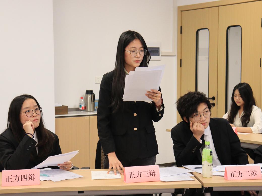 赛后,评委对比赛中的场景呈现、逻辑构建与细节处理进行了细致地点评与总结。随后,评委于心月作出总结陈词,鼓励大家以辩论为媒介,持续锤炼思辨能力,最终用一句话给整场辩论赛画上完美的句号——“希望你们一直在路上,永远年轻,永远如热泪盈眶。”