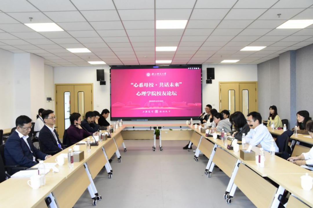 4月18日下午,心理学院“心系母校·共话未来”校友论坛于33幢511圆满举行。来自不同年级、不同行业的校友代表应邀返校,齐聚学院新大楼,共叙师生情谊,共话学院发展。浙江师范大学原副校长、心理学学科带头人李伟健,心理学院院长孙炳海,党委书记马莉,副院长汪俊、贾磊出席论坛,党委委员李新宇、詹沛达,教师代表褚晓伟、姚静静、李城林、肖威龙,各办公室主任,以及各届校友代表共同参与论坛。会议由马莉主持。